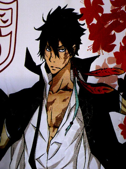 壮絶な流し目である こんなものが飾ってるJMPはどこのホストクラブだよ…!と思ったんだが私間違ってないよね??お隣は以外とむっちりしてるプリーモさま(体の厚みが外国人)、他にはひばりんと骸様がいらっしゃいますが、えー…ボスあれだよね、三十代だよね?? 同じようにタペストリー飾ってあるZ時代の悟空だって7歳の子持ちだけどボスより年下だったように記憶してるんだけど、気のせい??ねぇ気のせい??? 確か悟空一応一回死んだときって確かまだ20代前半だったはずだから(あの親子洒落にならんくらいすげー結婚早いんだよねー)、ボスより確実に年下だよね…(つまり10数年の間に晩婚化が進んという…そういう話じゃないだよ)それにしてもこの全身、なんというか無防備すぎてなんだかいたたまれないのだが……。こんなすんごいエロいアイテム、壁に掛けるなんてことできねぇよ! 眠れないよ! 寝る前にこんな顔見たら興奮して眠れないだろぉおおおおおおお!!!!(ちなみにこのタペストリー、写真撮ってるうちにだんだん色々恥ずかしくなってきて元通りに巻いてしまいました>駄目じゃん)そのうち慣れたら飾るよ…いつになるんだそれ [4回]