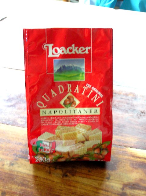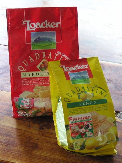 こんなもん食っていいわけない 前にも書いた気がしますが、今回は写真つきで。最近自分を狂わせる悪魔のお菓子、イタリアのメーカー、ローカーから出ている「クワドロティーニ」というウエハースのお菓子です。これは最近入荷された250G袋。360円くらいです。このお菓子、薄いウエハースを幾層も重ねて、間にクリームが挟まっている小さいブロックサイズのお菓子なんですが、100gで510Calもあるんです。これは250gなので、この袋ひとつで1250カロリーもあるという恐怖のお菓子…!!さすがに赤いのは相当でかいので、一回で食べるのは無理なサイズですが、隣の黄色い袋(レモンクリーム味)は125グラム(これだけで700カロリー強)なんか一回でいけそうな大きさです。ものすごくおいしいものは、ものすごく脂を使っているか、ものすごく砂糖を使っているかのどちらかだ! 人間がうまいと感じる圧倒的なうまさは「脂」と「糖分」である、ということを実感するおそろしいお菓子です。でもすごいうまいんだこれ…!!!! 脳味噌がぱぁっと目が覚めるというか、明るくなるような感覚がある、おそろしいお菓子です。原稿やってると猛烈に食べたくなるのは、しょーがない…。暴力的なバカップル話を書くには、脳味噌に糖分がないと…あああああ。ちなみに成人女子が一日に必要とされるカロリーは1600くらいです。ローカー、おそろしい子! [0回]