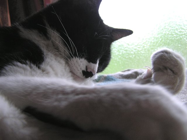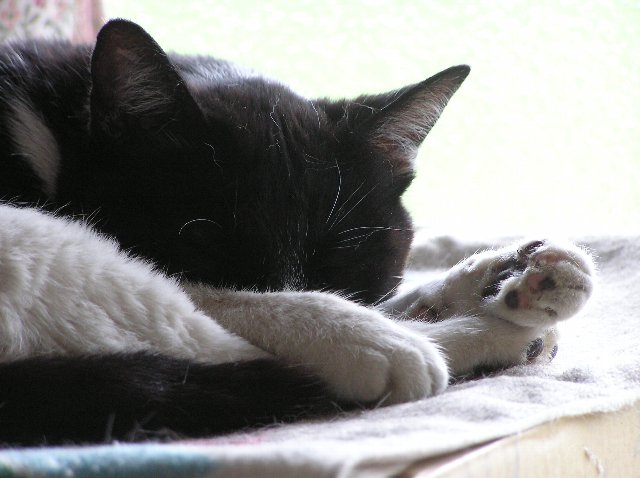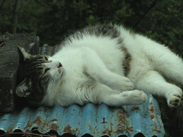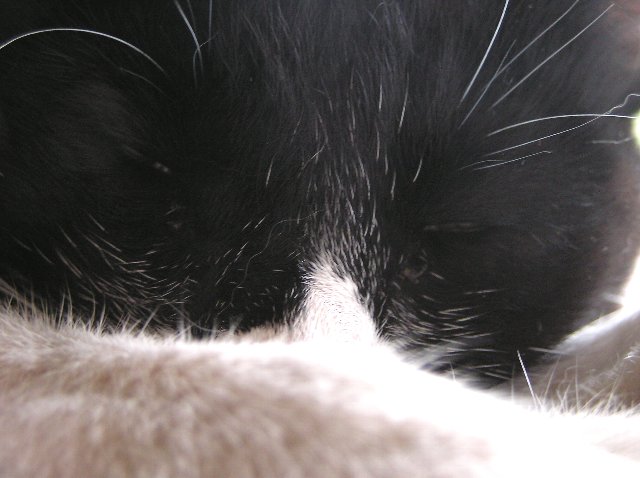 リクエストされたので うちの猫その1目を閉じています。あと、鼻の模様がでかい鼻糞のようだと亡くなった祖母に言われてました。確かに鼻黒猫だwパンダのような色と柄です。ほとんど鳴かず、静かに餌を食い、トリを捕まえるのが大好きで(もちろん食べます)、たいへん気が荒く、静かで、人の背後に立つのが大好きです。静かにいつも同じところで寝ています。自分の子供であるもう一匹の猫と、大変仲が悪いです。春~秋は本当に餌を食いにくるだけで、庭でうろうろしています。でも一緒に散歩してくれるんだぜ。 [0回]