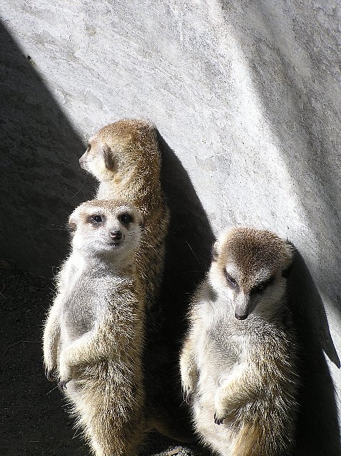 車が確実に揺れた サファリの写真あれこれ。どこかの街角にたたずんでいるようなハードボイルドちっくなミーアキャット。多分親子。これ結構目線があう動物でした。実物はかわいいのに写真に撮ると凄いハードボイルドタッチ。前の車がサファリのガイドカーで、間近で止まってていいなーって思ってたんですが、……それどこではなかった!!!!ここらへんからすでに嬌声あがってたwww車の外に聞こえるくらいたぶん叫んでました、二人して(笑)。ちょうど目の前で姿勢替えてて、もそもそしてた。二匹で。萌えのあまり血管切れたんじゃないかってくらい、興奮しまくりでした。天気よかったので背景が書割のような青空……。巨大な前足で頬をぐりぐりする様子はなんか凄かった。萌えたというより、悶絶した。 [3回]