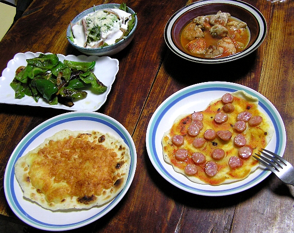 一人でフルコースでお祝い ボスさん誕生日おめでとう!!すげー簡単なんちゃってイタリアンフルコースっぽいもので祝うよ!ピザ生地を作って寝かしている間に野菜を切って肉を解凍して調味料に漬け込んでおく。調味料は塩小さじ半分・黒こしょうたっぷり・オリーブオイル大さじ1~2くらい。10分くらいつける。あればリーズマリーを入れておく(肉の臭みとり。今回鶏肉のむね肉なのでなくてもよかったかな~とは思った。でもハーブ入れると大変イタリアンっぽくなる)ピザ生地は簡単・早い・うまいのクリスピーピザの作り方(2525動画より)から。メモしたノートにこれしかなかった…他のレシピをメモったつもりがしてなかったようす。無念。これは4枚分。強力粉180グラム、片栗粉20グラムを泡だて器で混ぜ、塩少しを入れて水100グラムを中央から混ぜてまとめ、さっとまとまるまで捏ねて30分寝かしたもの。これを4等分して半分は冷凍し、残り半分を粉を降って薄く延ばし、フライパンにそのまま乗せて片面づつ焼くと台が出来上がり。片面焼いたら火を止めて具を載せ、それから蓋をして焼くとしっとり、しないとパリパリに焼ける。今回は二枚一緒に焼くので、一枚は片面焼いたらトースターで表面を焼き、その間に二枚目を焼いて、準備している間に焦げ目がつくように、フライパンからガスレンジの魚焼きグリルに写して少し焼いてみました。魚焼きグリルはオーブンより焦げ目が綺麗につきます。火が結構強いので焦げやすいのが難点。ピザを焼く前に野菜と肉を焼き、肉だけ取り出して皿にいれ、トマトソースをかけてラップをしてレンジで2分くらい。フライパンは野菜を取り出してそのままピザを焼いて…ということで、だいたい粉出してから1時間で完成しました。なんちゃってイタリアンフルコース出来上がりー!これにインスタントスープをつけて、形は揃った…はず。生ハム野菜サラダ(ヨーグルトソース)とポタージュ前菜・なすとピーマンのオリーブオイル焼き1の皿(プリーモ)・ピザ二種類(トマトソースにソーセージとクリー、パルメザン、チェダーチーズ三種のピザ)2の皿(セカンド)・鶏肉のトマト煮込み完食! しかし15分で食べ終わるとは早喰いにもほどがある! 祖国ー!デザートはコーヒーとマルカポーネにエスプレッソソースでなんちゃってティラミス。ちゃんと粉で入れてみました。本当はスプマンテでも開けたいところですが、飲みながら食べたらボス誕話が書きあがらないままで寝てしまうよ…!! ということになるのは必須なのでお預けです。せっかく今イタリアサインが安いのに…早く飲みたいなりー!少なくともフツーにヴァリアーさんたちはもっと時間をかけてご飯を食べると思います…。ボスちゃんだって1時間はかけて食べるだろうな。今の時期のメインってなんだろう、ジビエかな?やっぱ山雉とかじゃないのかなー、中に香味野菜つめてオーブンで3時間とか焼く料理じゃないのかな。三日くらい前から下準備がいるやつ。ルッスが気合入れて作ってくれているんじゃないのかしらー! [0回]